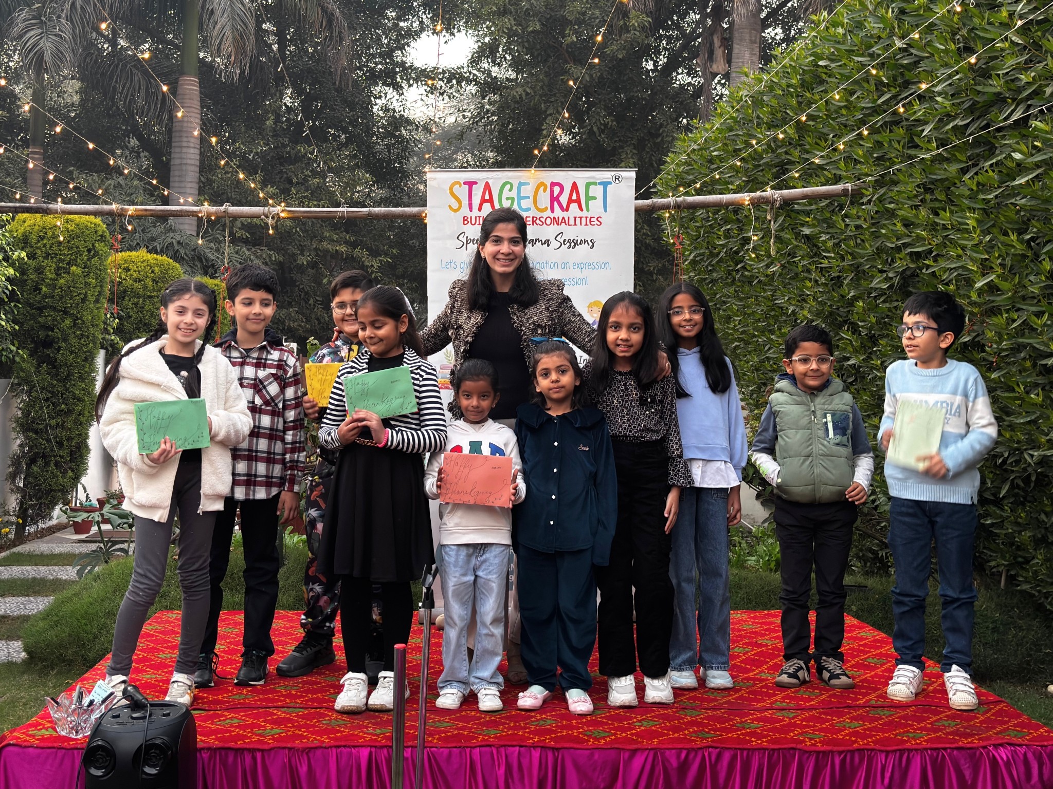 At Stagecraft, we believe that every child holds the power to inspire and is built for a stage where they can amplify their voice. By curating a space where their inner spark can take the form of creativity and imagination, our programs are designed to nurture language skills, confidence, and self-expression through theatre and personality development. Catering to kids aged 4-16, we use interactive storytelling, podcasts, dramatic role-playing, and stage performances to help children develop essential life skills like public speaking, communication, teamwork, and leadership.